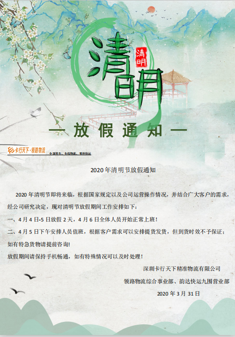 发表时间:2020/4/2 文章来源:卡行天下 领路物流
